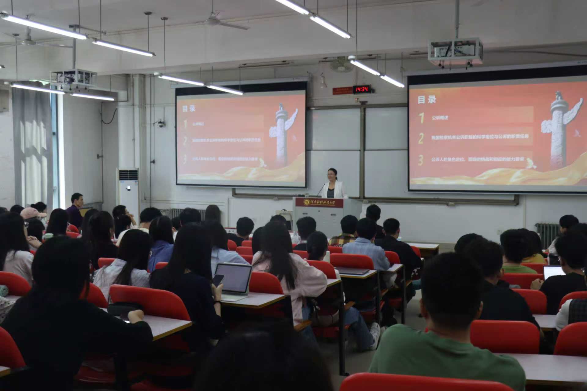 尚粉红主任围绕公诉的概念、职能定位、历史沿革以及公诉人的角色与能力要求展开系统讲解。她指出,公诉是检察机关代表国家追诉犯罪的核心职能,具有法律监督属性,贯穿于审查起诉、出庭支持公诉、侦查与审判监督等环节。她结合我国公诉制度的发展历程,强调公诉工作在现代司法体系中的基石作用,并深入剖析了新时代背景下公诉工作面临的挑战,包括庭审实质化、程序性辩护增多、群众司法需求提升等。她鼓励法学学子夯实专业基础、提升综合素养,培养客观公正的司法立场和为民担当的职业精神,未来成为高素质公诉力量,为法治中国建设贡献力量。整场讲座内容详实、贴近实务,为师生理解检察工作提供了深入视角。